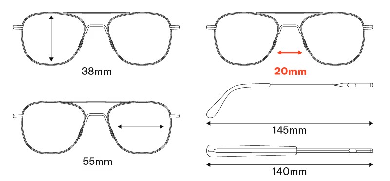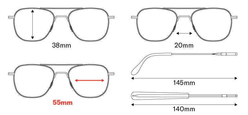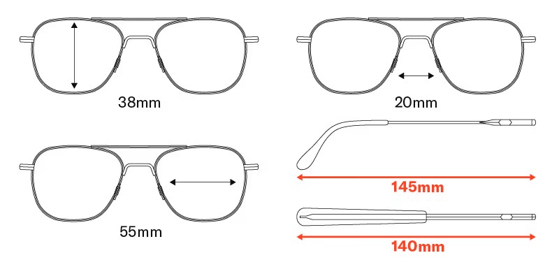 Một số người định nghĩa kích thước gọng kính là chiều rộng tổng thể của gọng kính phía trước - từ đầu mút này đến đầu mút kia. Sử dụng kích thước tròng kính là một phép đo đáng tin cậy và chính xác hơn, nhưng bạn luôn có thể liên hệ với đội ngũ chăm sóc khách hàng của chúng tôi nếu cần đo chiều rộng toàn bộ gọng kính.