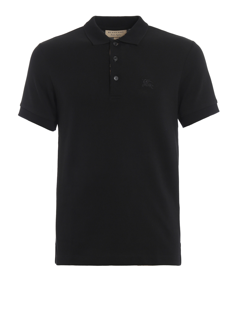Áo polo được làm từ chất liệu cotton piqué nhẹ, thêu họa tiết Hiệp sĩ Cưỡi ngựa cùng tông màu. Kiểu dáng ôm sát và lót bằng vải kẻ caro Burberry màu be đặc trưng ở phần khuy áo.