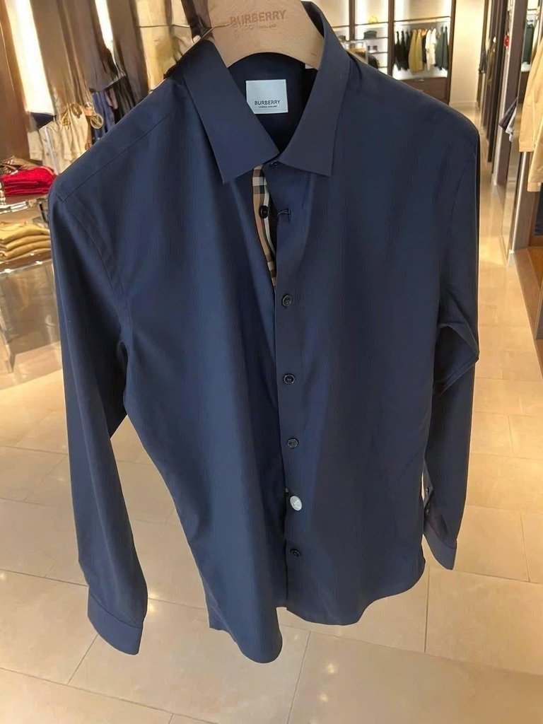 Áo sơ mi dài tay được làm từ vải poplin cotton, lót họa tiết Burberry Check ở viền cúc và măng séc với màu be đặc trưng của thương hiệu. Kiểu dáng được thiết kế vừa vặn, sang trọng trong mọi tình huống thường nhật.